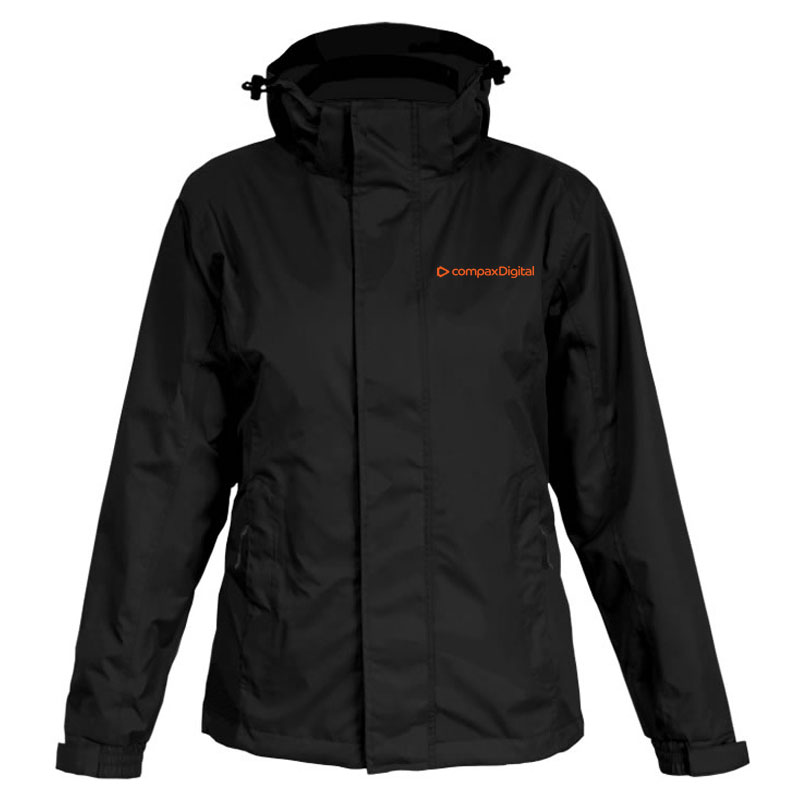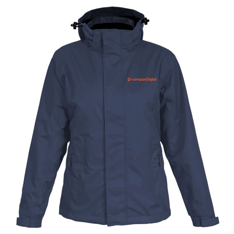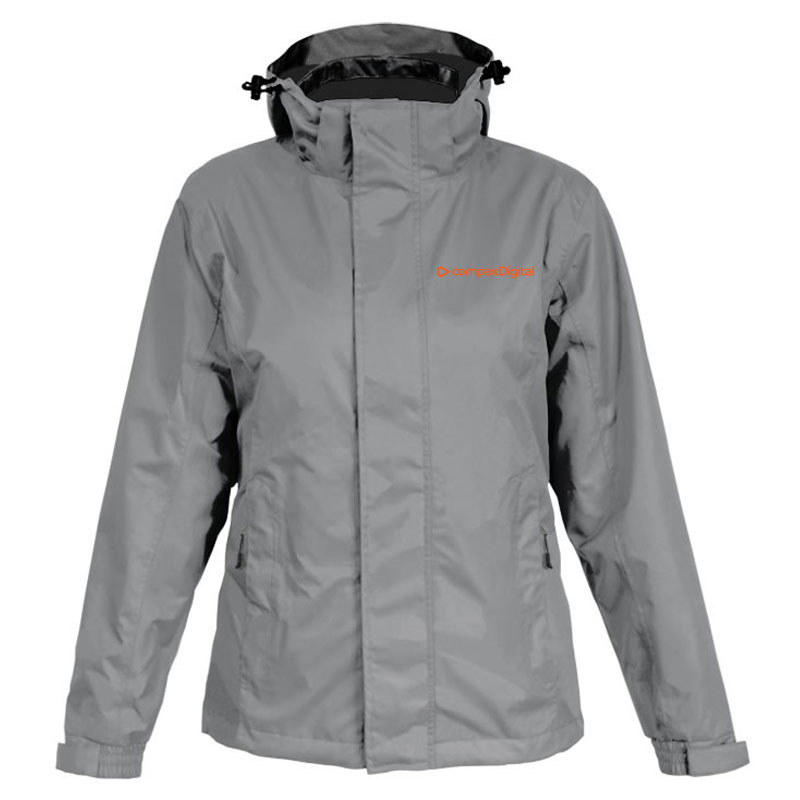 Jacke, Stehkragen, verdeckter 2-Wege-Reißverschluss, plus Klettverschlüsse, abnehmbare Kapuze mit Volumenregulierung vorn und hinten, verdeckte Napoleontasche mit Reißverschluss, verstellbare Armabschlüsse mit Klettverschlüssen, Tunnelzug am Saum mit Kordelstopper innen, 2 Seitentaschen mit Reißverschluss, Invisible Zip zum Veredeln, Reißverschluss und Fixierung für wechselbare Innenjacke, neutrales Größenetikett, bedruckbare Fläche innen für Branding, getapte Nähte, PU beschichtet, wasserdicht, 5.000 mm, winddicht, atmungsaktiv 5.000 g/m² / 24h, Außenmaterial: 100 % Polyester, Innenmaterial