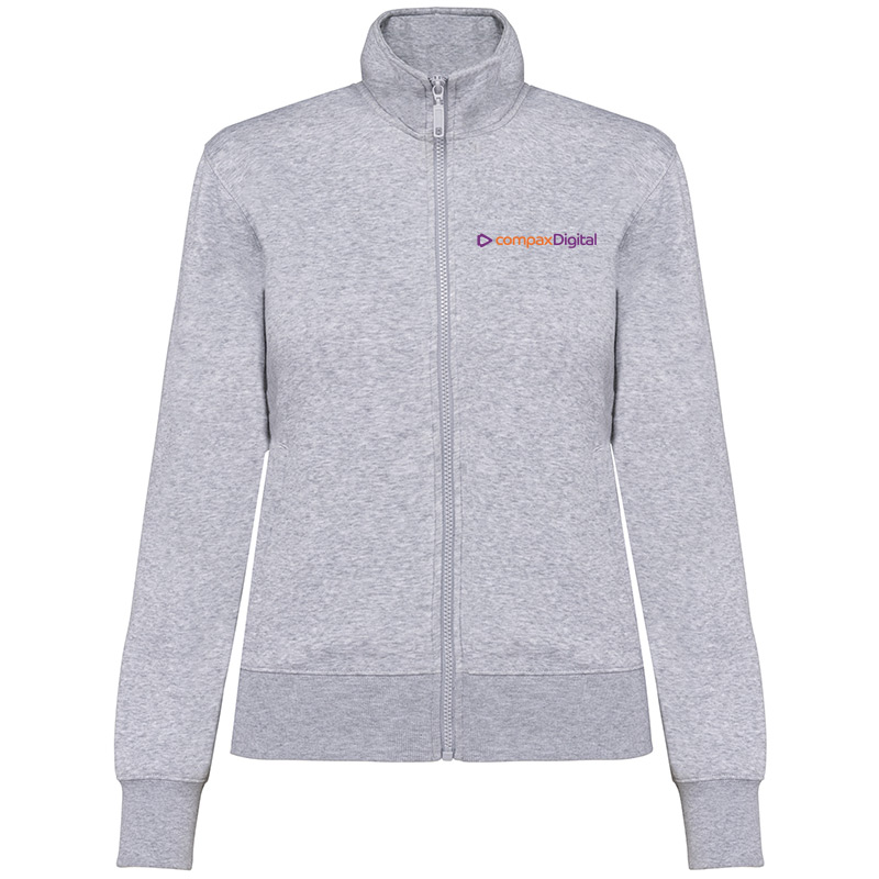 LSF-Behandlung (Low Shrinkage Fleece: vorgeschrumpftes Molton). Gebürstetes Fleece mit drei Fäden aus gekämmter Baumwolle. Körpernaher Schnitt. Gerade geschnittene Ärmel. Hochgeschlossener Kragen. Ton-auf-Ton Kunststoff-Reißverschluss. 2 Paspeltaschen mit Reißverschluss an den Seiten. Halbmondförmiger Halsausschnitt auf der Rückseite für eine einfache Markenveredelung auf der Innenseite. 1×1-Strickbündchen an Ärmeln und Saum.